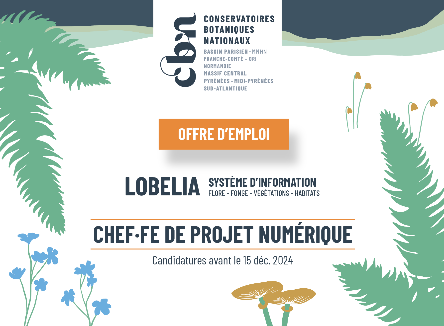 Afin d'assurer la coordination et l'évolution de leur système d'information mutualisé intitulé "LOBELIA", les Conservatoires botaniques nationaux (CBN) du Bassin parisien, de Franche-Comté, du Massif central, de Normandie, des Pyrénées et de Midi-Pyrénées, Sud-Atlantique recherchent un·e chef·fe de projet numérique.