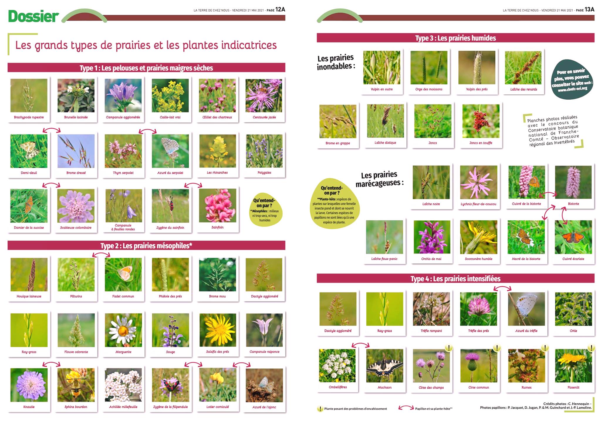 En mai, notre article du mois était consacré aux prairies... et il était accompagné d'une surprise ! Au centre du journal, une planche photo en double page présentait en images, les principales 'Plantes indicatrices des prairies'.