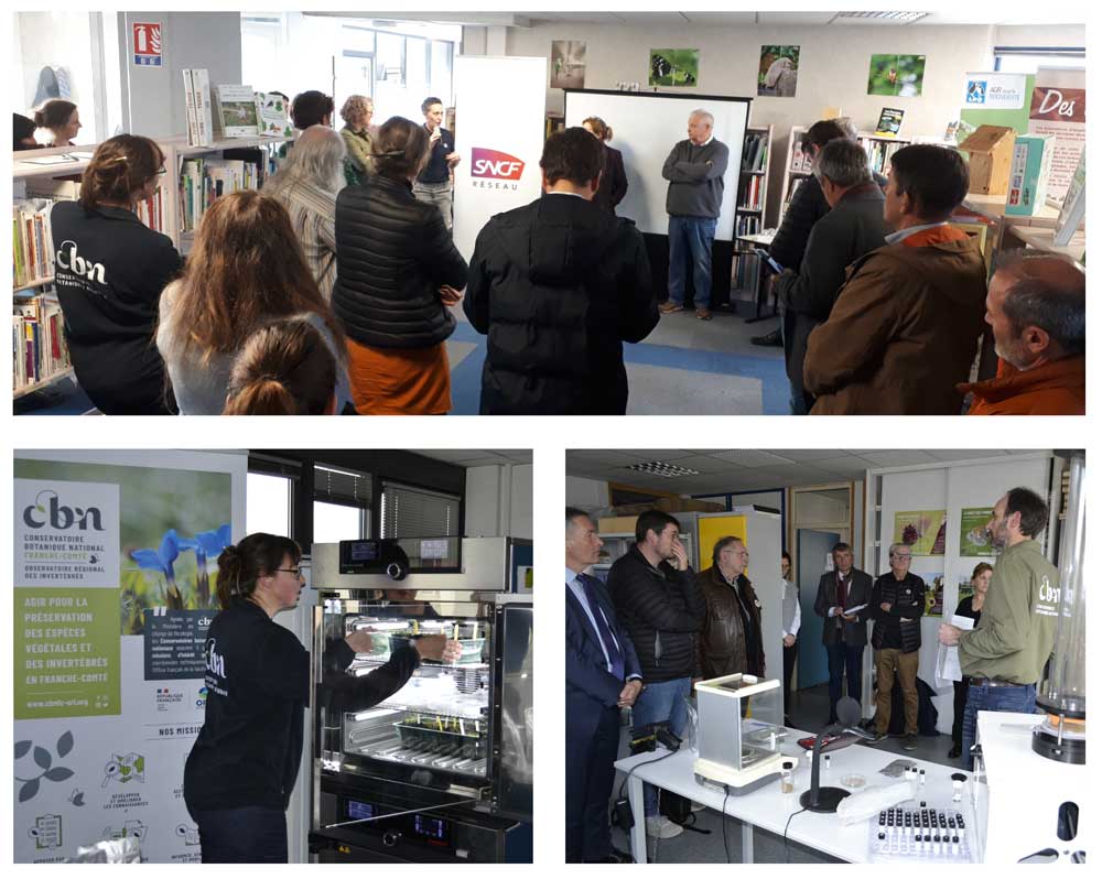 Notre équipe scientifique a eu le plaisir de présenter aux élus, partenaires et journalistes présents son vaste programme de conservation, dédié à la constitution d'une banque de graines viables pour 15 espèces végétales menacées de disparition et présentes dans la zone du tracé de la LGV Rhin-Rhône.