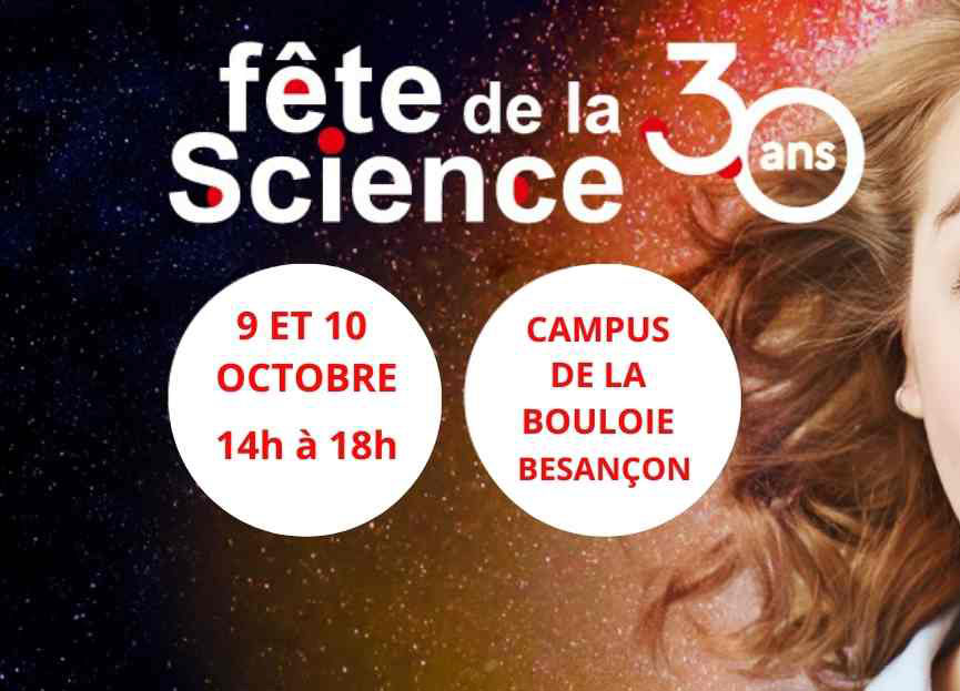 L’Université de Franche-Comté vous invite à fêter la science, le weekend du 9 et 10 octobre 2021, au coeur du campus de la Bouloie à Besançon.