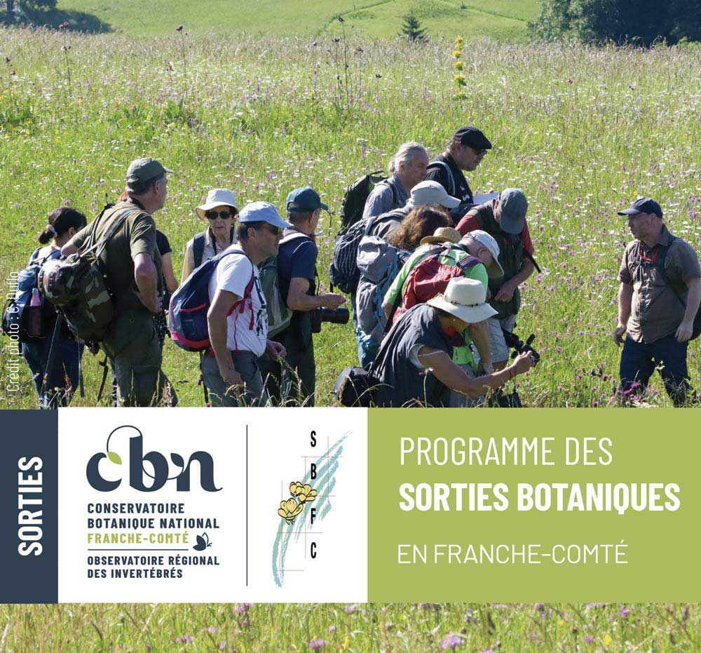 Programme des sorties de l'année 2025, organisé par la Société botanqiue de Franche-Comté (SBFC), en collaboration avec le Conservatoire botanique national de Franche-Comté - Observatoire régional des Invertébrés (CBNFC-ORI).
