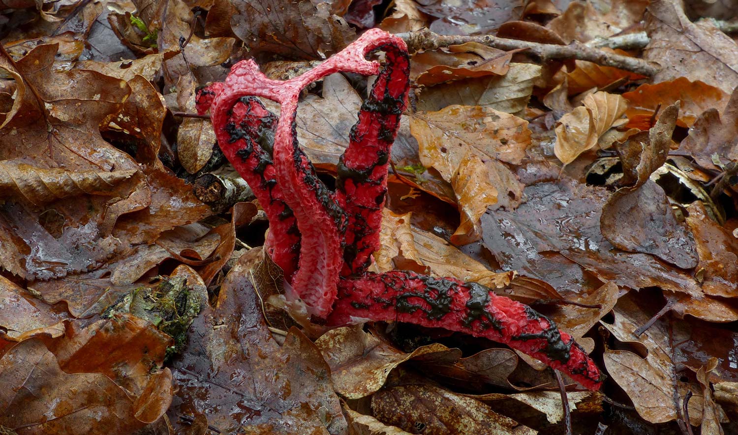 Le Clathre d’Archer, Clathrus archeri (Berk.) Dring, est un champignon de la classe des basidiomycètes et de l’ordre des Phallales. Il se présente d’abord sous la forme d’un œuf gélatineux, avec plusieurs cordons mycéliens lilas à sa base, qui s’ouvre et libère ensuite quatre à huit lanières rouges, en partie recouvertes d’une gléba visqueuse noire, donnant un aspect typique d’étoile. Cette gléba dégage une forte odeur nauséabonde, de cadavre, qui permet d’attirer les mouches qui dissémineront ses spores.