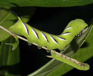 Les chenilles ont la particularité d’avoir une corne sur le 8ème segment abdominal. Certaines relèvent la partie antérieure de leur corps, cette position rappelle celle des sphinx de la mythologie égyptienne ou grecque.
