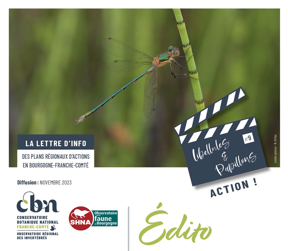 Numéro 9 - Novembre 2023 La lettre d'information des plans régionaux d'actions en faveur des papillons et des libellules de Bourgogne-Franche-Comté, éditée par le Conservatoire botanique nation...