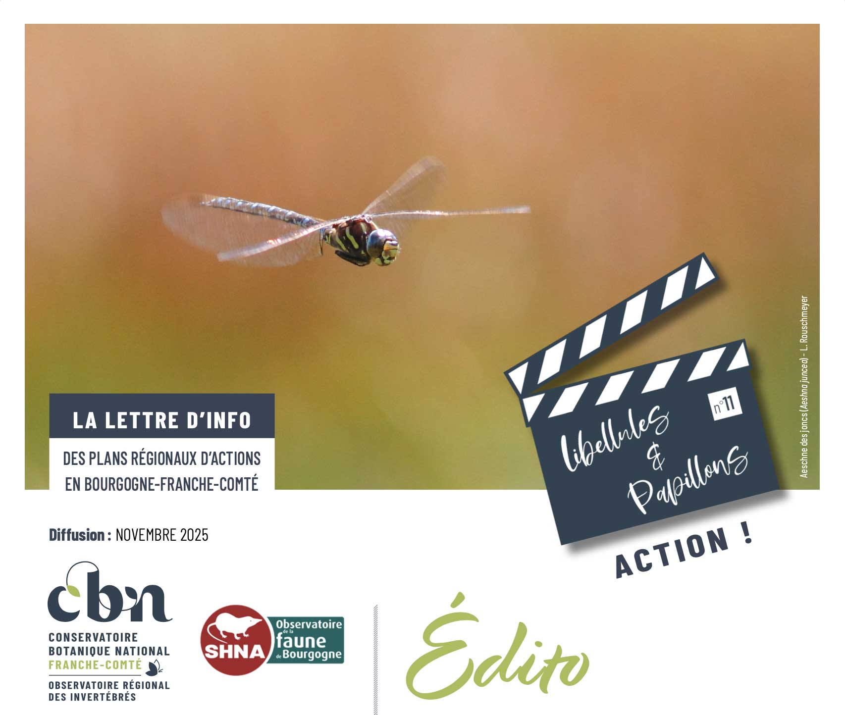 Numéro 11 - Novembre 2025 La lettre d'information des plans régionaux d'actions en faveur des papillons et des libellules de Bourgogne-Franche-Comté, éditée par le Conservatoire botanique natio...