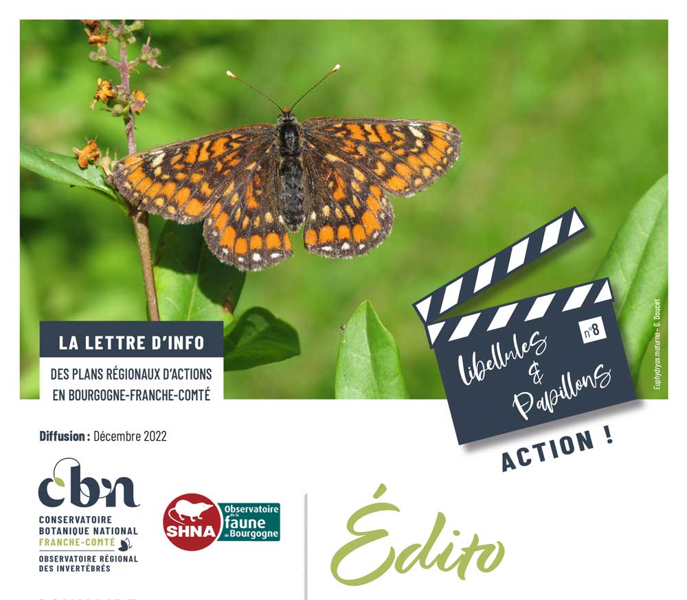 Numéro 8 - Décembre 2022La lettre d'information des plans régionaux d'actions en faveur des papillons et des libellules de Bourgogne-Franche-Comté, éditée par le Conservatoire botanique nati...